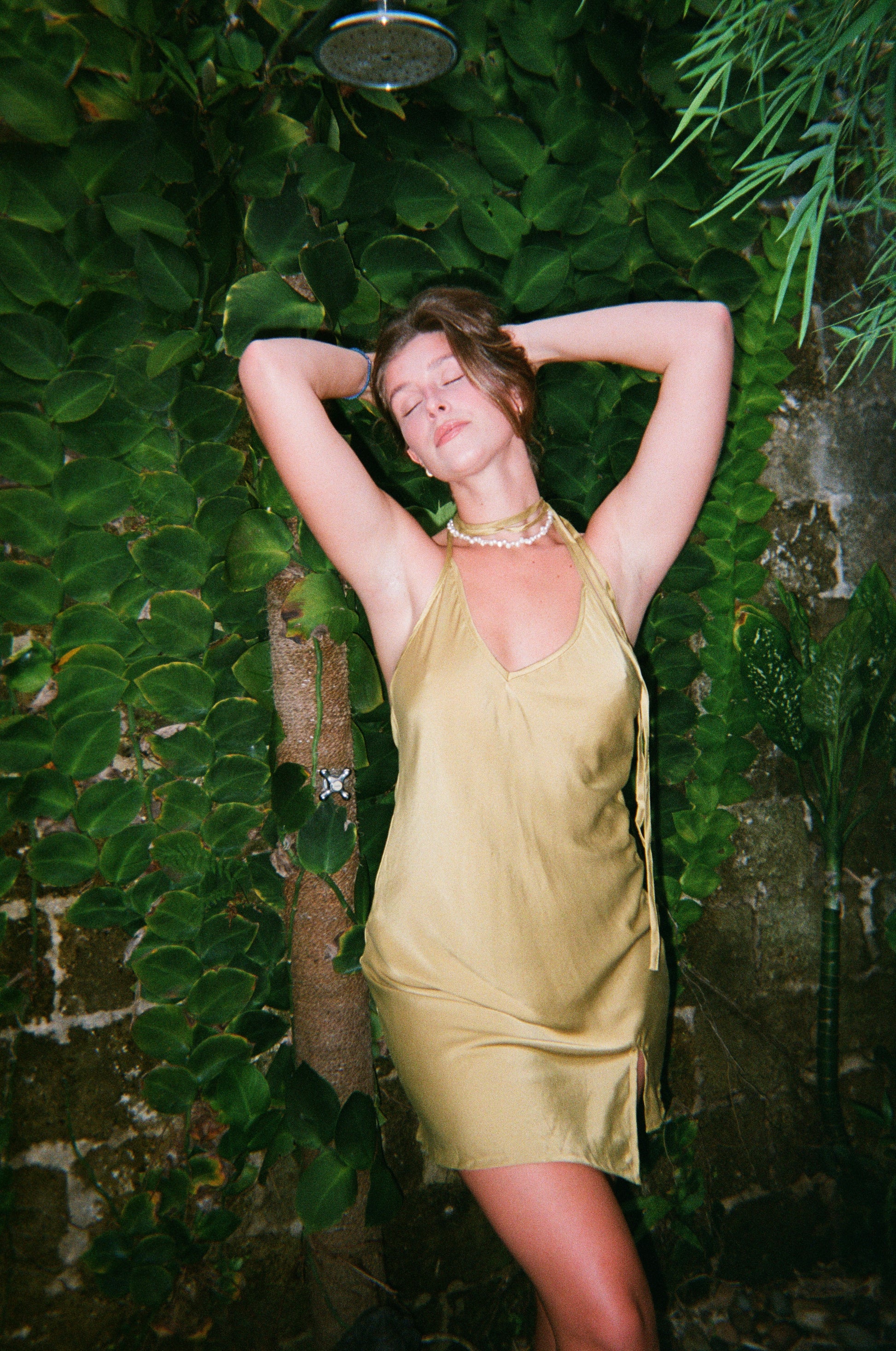 Marigold dip dyed onto 100% silk. This batch of marigold came out different then the usual yellow gold, and it more so has sage green undertones while still maintaining a neutral yellow hue.