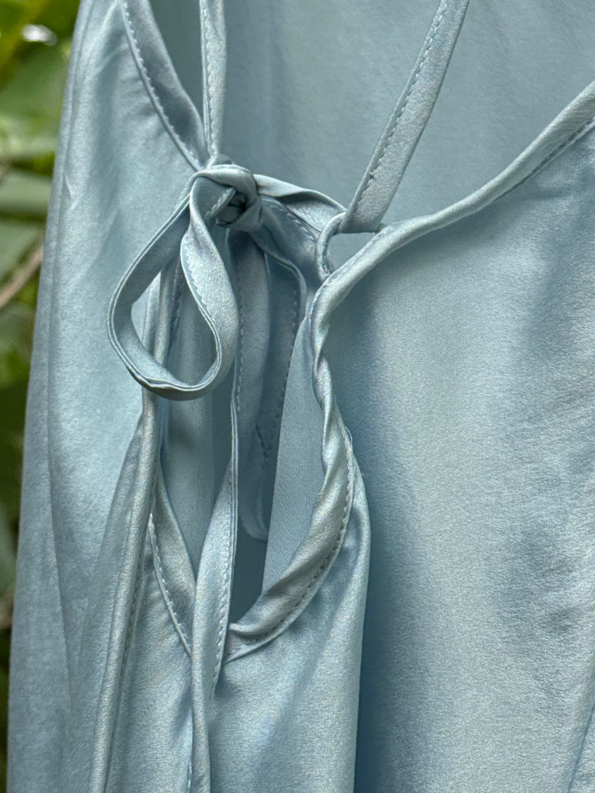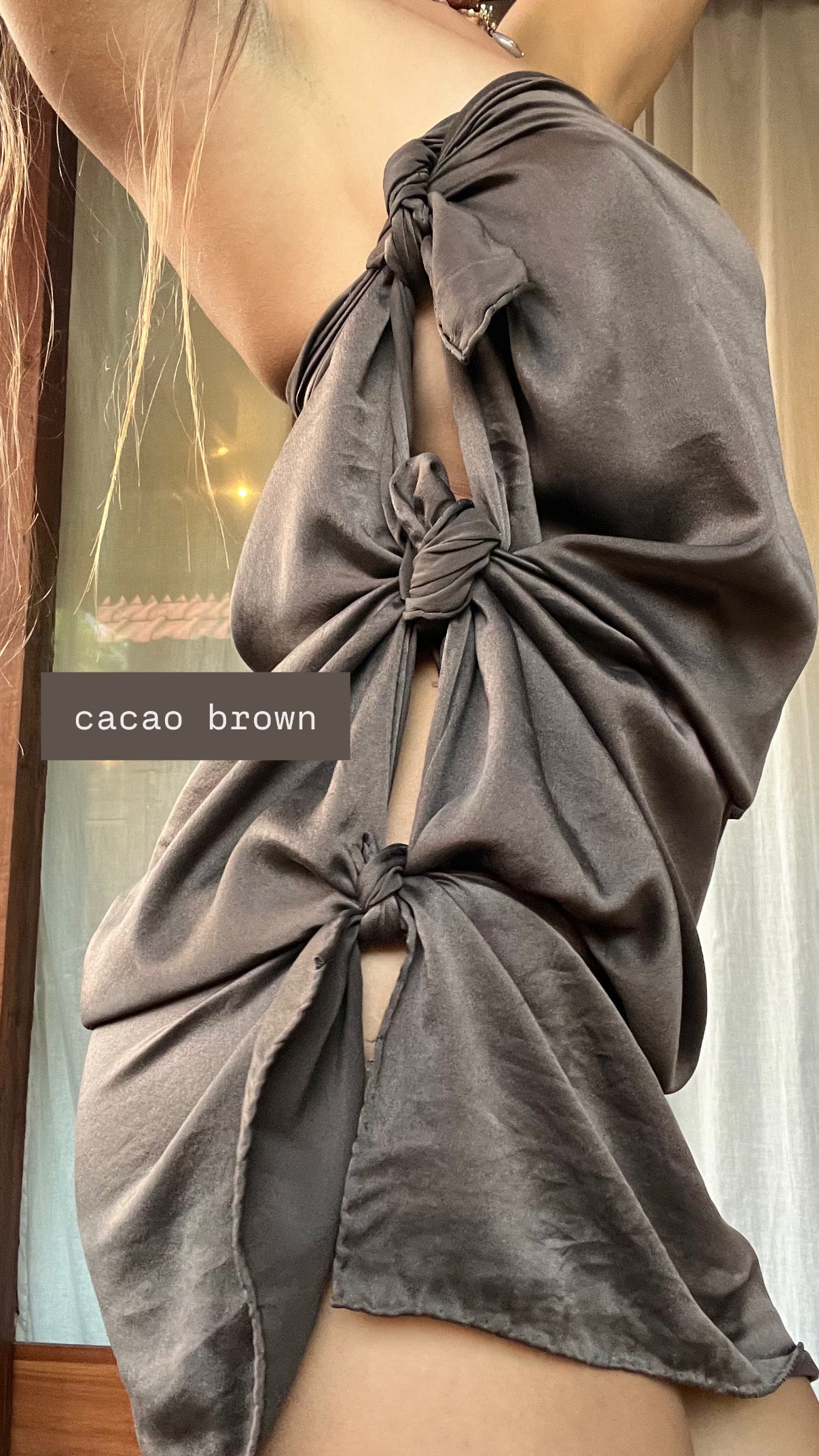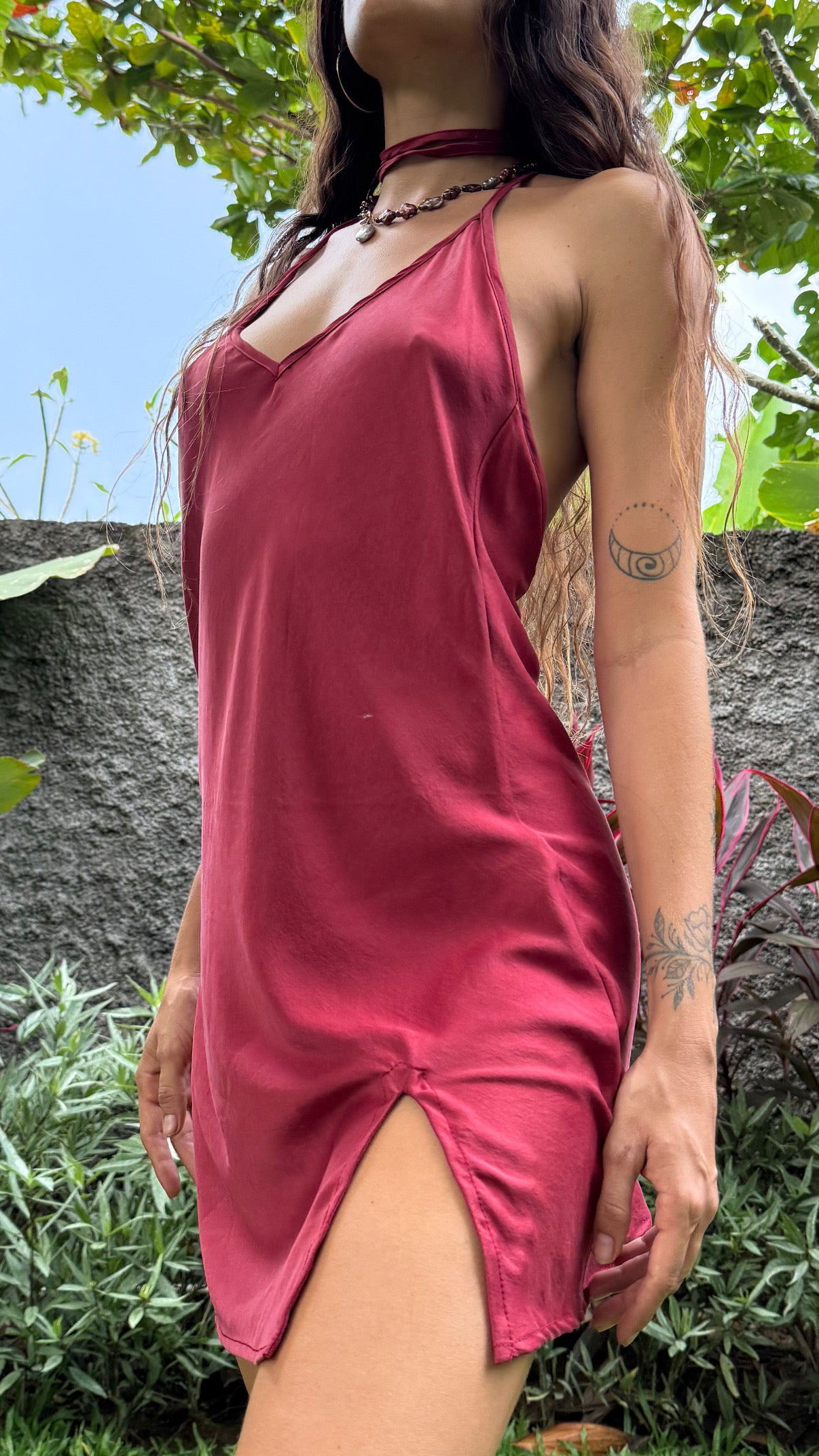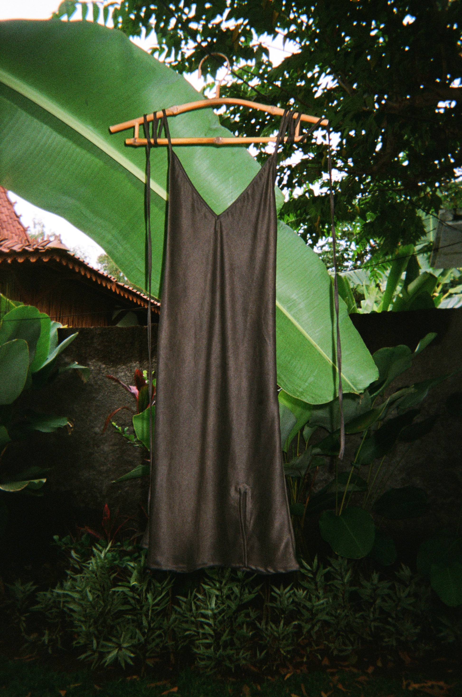 This custom order dress is a true invitation into cocreation! With multiple many plant dyed possibilities, you can truly customize the perfect adornment for YOU. The dress features meter long straps and hidden loops along a low back for even more limitless ways to tie and style.